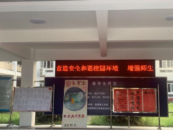 通过医学院一楼大厅LED屏幕滚动播放国家安全教育宣传标语,创造良好的宣传舆论氛围,增强全员安全意识,让“安全重于泰山”理念深入人心。