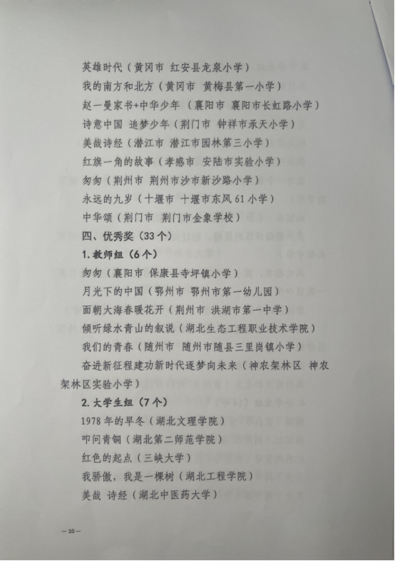 “诵读中国”经典诵读大赛湖北省决赛获得优秀奖