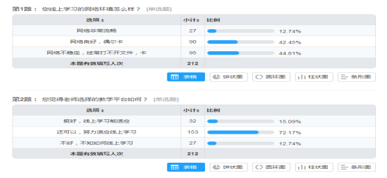 2月25日,医学院教学办利用“问卷星”平台,针对学生网络环境,教师线上授课组织形式、线上教学效果满意度等方面制成问卷,获得线上教学实施效果的第一手数据。