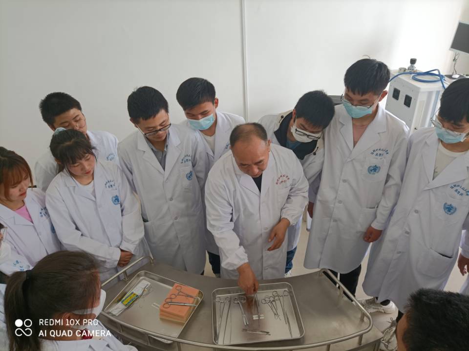 王文勇教授的授课主题为“外科手术器械的辨认”。王教授以临床案例为切入点,用通俗易懂的语言深入浅出的进行讲解,为学生点明每一种手术器械的名称、正确的握持方式、用途,他凭借丰富的实践操作经验将教学难点一一启发化解,使学生顺利地完成学习任务。