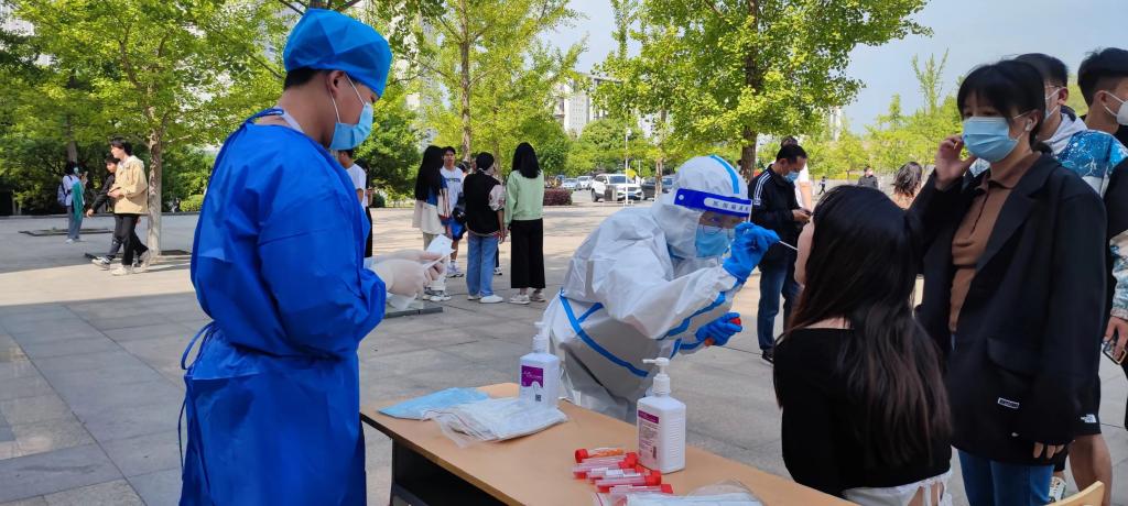 5月2日上午十点,常规对随州职业技术学院进行核酸抽检,参与此次核酸检测人员共计1980人,医学院领导统筹本次抽检工作,协调医学院10名教师及20名学生参与检测工作,确保抽检工作圆满完成。