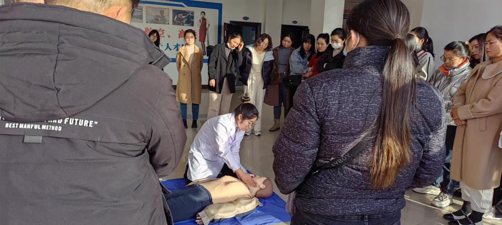 2023年11月23日下午,医学院青年教师在霞客楼对来自企业的工作人员进行了心肺复苏术培训。教学过程中,教师一边演示、一边讲解心肺复苏术的适应症、操作流程和注意要点,并现场演练操作步骤。演示结束后,还进行了现场互动环节,培训人员进行体验并演练心肺复苏操作,教师现场详细指导。心肺复苏术培训让培训人员能够在相关情况下迅速采取正确的急救措施,培养救护意识,学习关注生命,做好自我保护。
