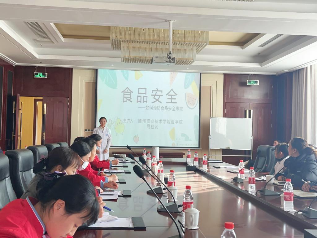 2023年11月24日下午,为加强神农国际大酒店员工们的自我约束力,共同维护食品安全。医学院在神农国际大酒店开展了以“食品安全”为主题的培训。