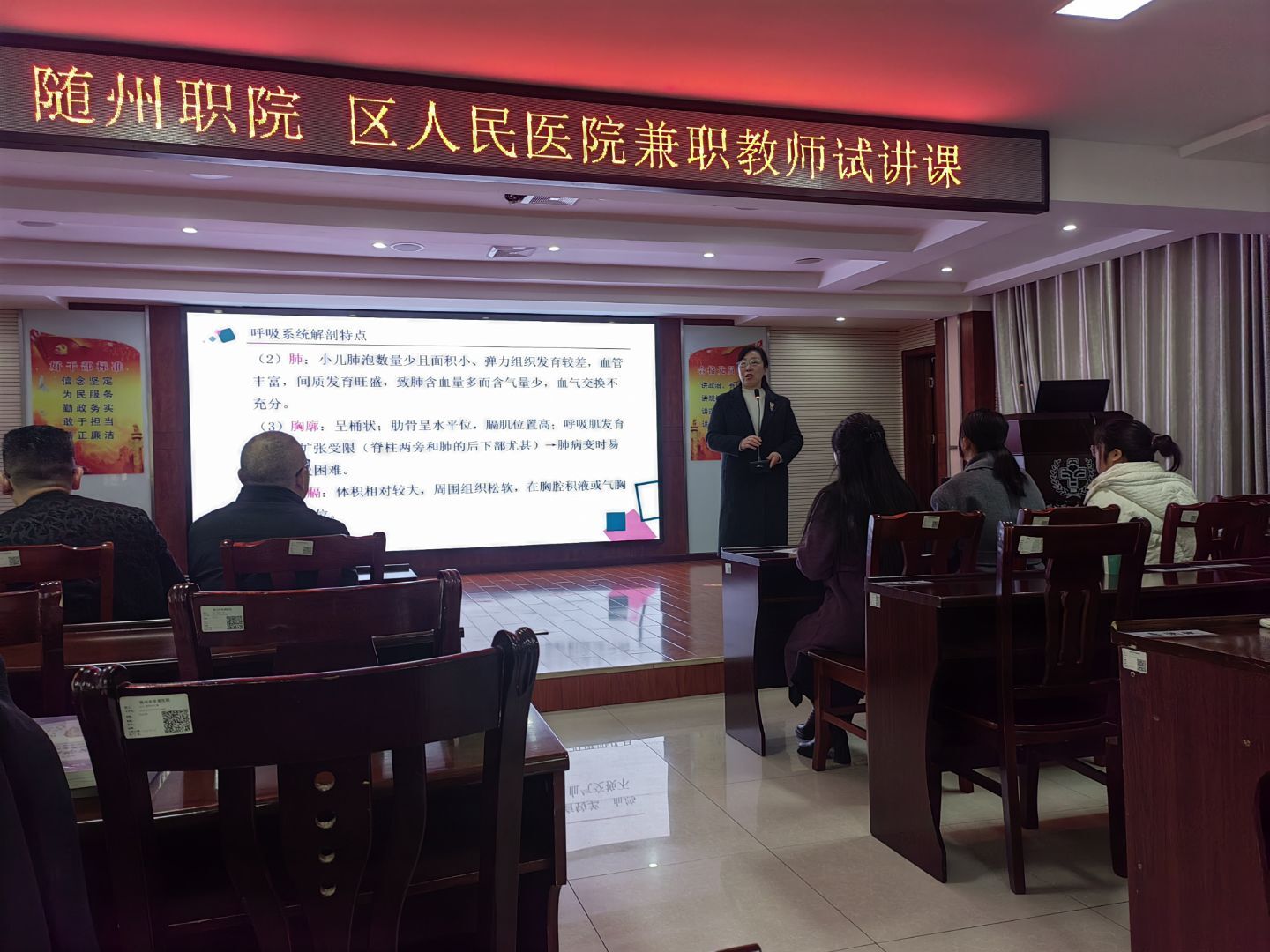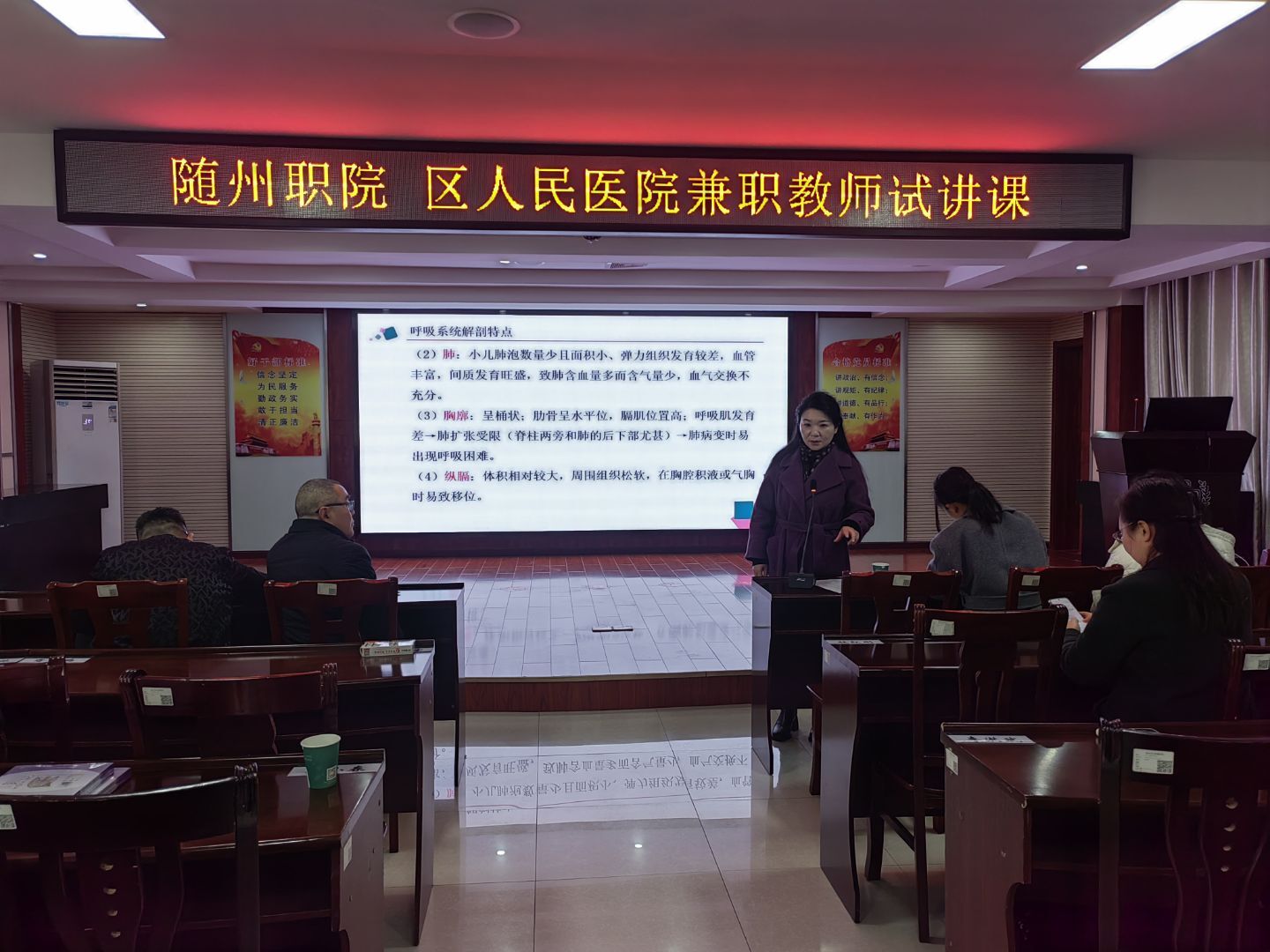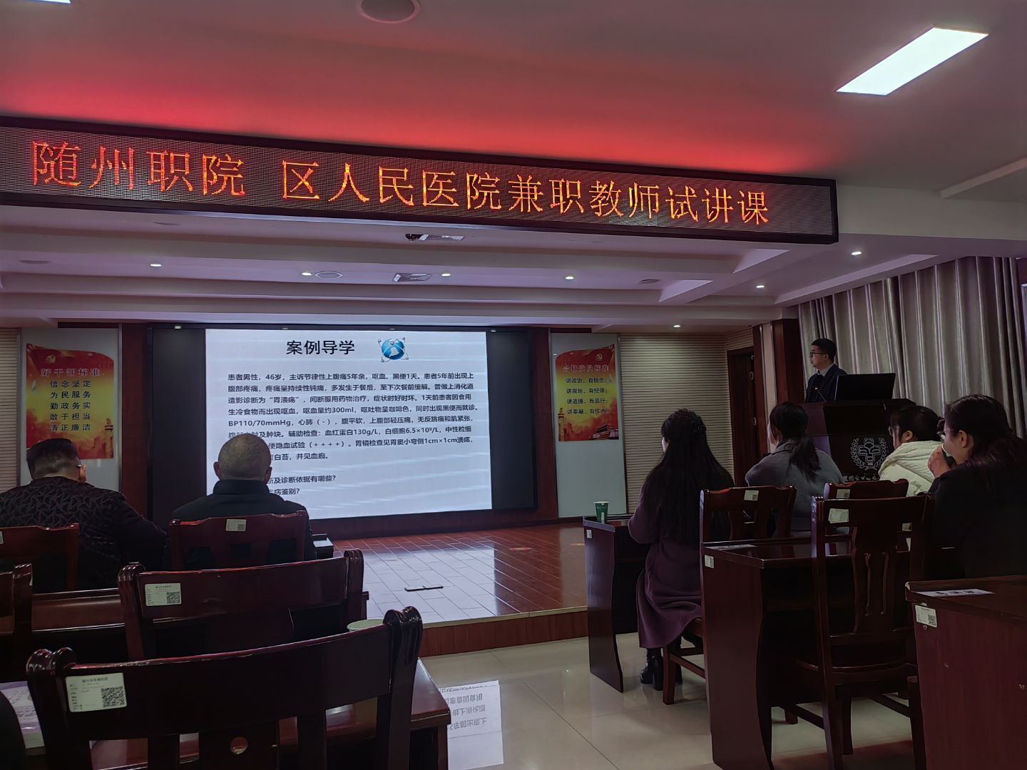 2026年3月7日上午,随州职业技术学院组织人事处、教务处、纪检监察机关及医学院教师赴随州市曾都区人民医院,开展兼课教师试讲评审活动,旨在提升医院临床教师教学能力,深化医教协同育人。