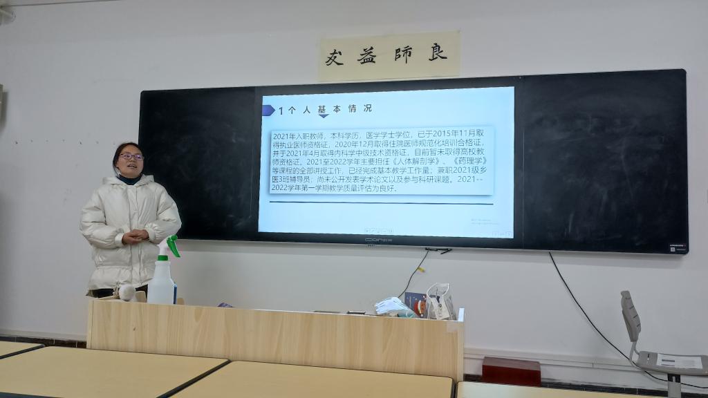 为促进教师业务水平的提高、激发教师敬业精神、提高医学院教育质量,医学院于2022年3月25日下午14点30分在云桂楼4405开展第二次教研活动,本次活动的主题为教师个人诊改汇报会,具体内容如下: