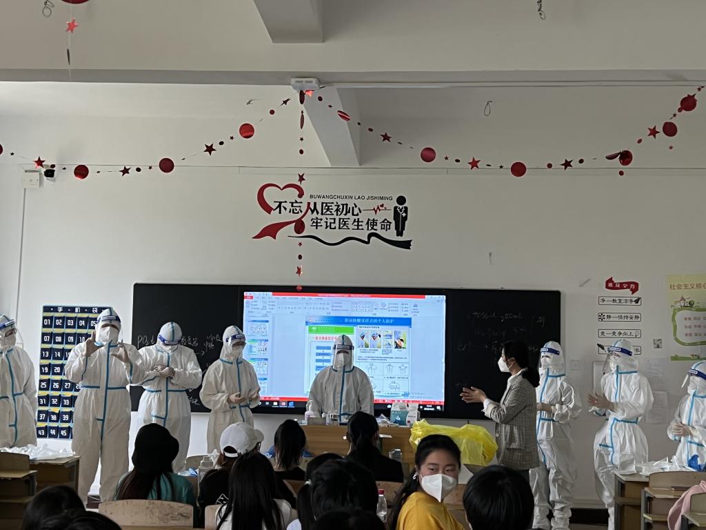 培训班邀请了随州市中心医院的医护工作者就新冠肺炎病毒核酸检测、标本采集、个人防护操作、生物安全管理要求等内容进行培训。重点围绕健康码查阅、核酸录入、穿脱隔离衣、七步洗手法等方面进行了详细的讲解,并现场展示个人防护服穿脱顺序和注意事项以及洗手消毒的正确方法等,让医学院的学生志愿者们直观地掌握操作细节和流程。