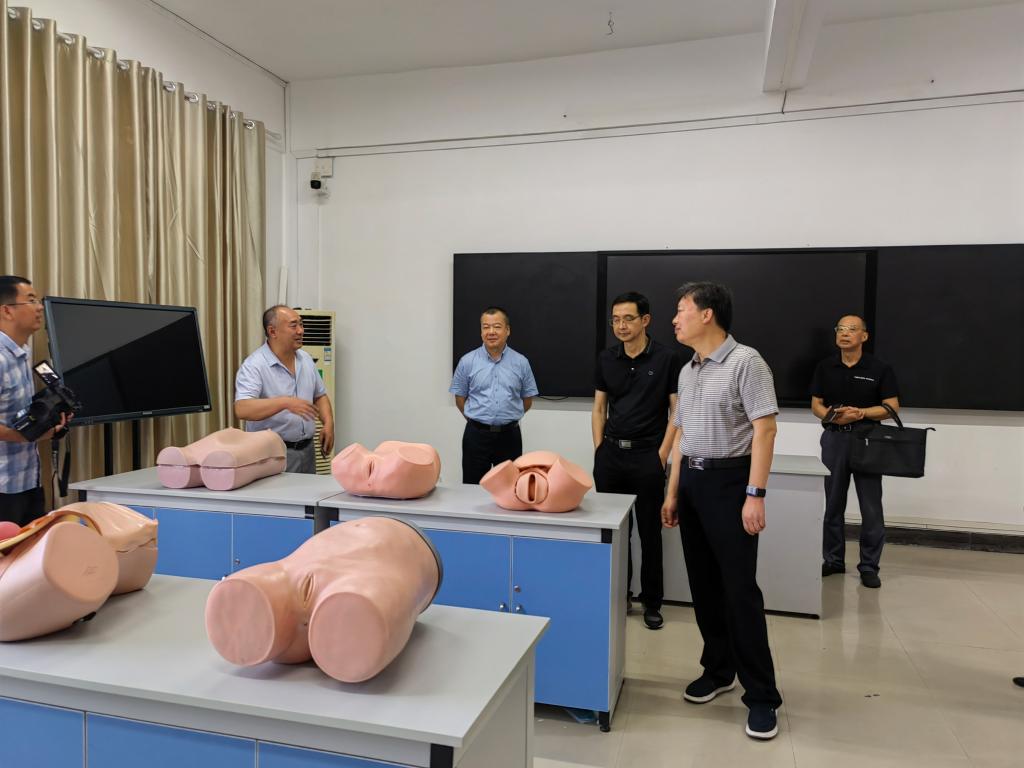 夏卫东一行来到医学院,了解专业设置、校企合作、学生就业等情况。随后来到医学院实训室,详细了解实训课程开展等情况,对学校技能型人才培养、服务地方特色产业发展的担当与成效给予肯定。