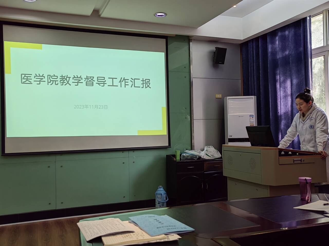 2023年11月23日下午,在行知楼开展了教学督导工作汇报会议,医学院就工作流程、工作措施、工作亮点、工作不足及工作建议进行汇报。汇报结束后,质量处肖处长进行总结,他指出,教学督导应该按照“三督三导”的原则开展工作,即督问题、督诊改、督质量;导规范、导改革、导建议。肖处长建议督导工作应当不断创新,及时反馈形成闭环,聚焦课堂主阵地,大力促进教师专业化程度,全面提升学生人才培养质量。