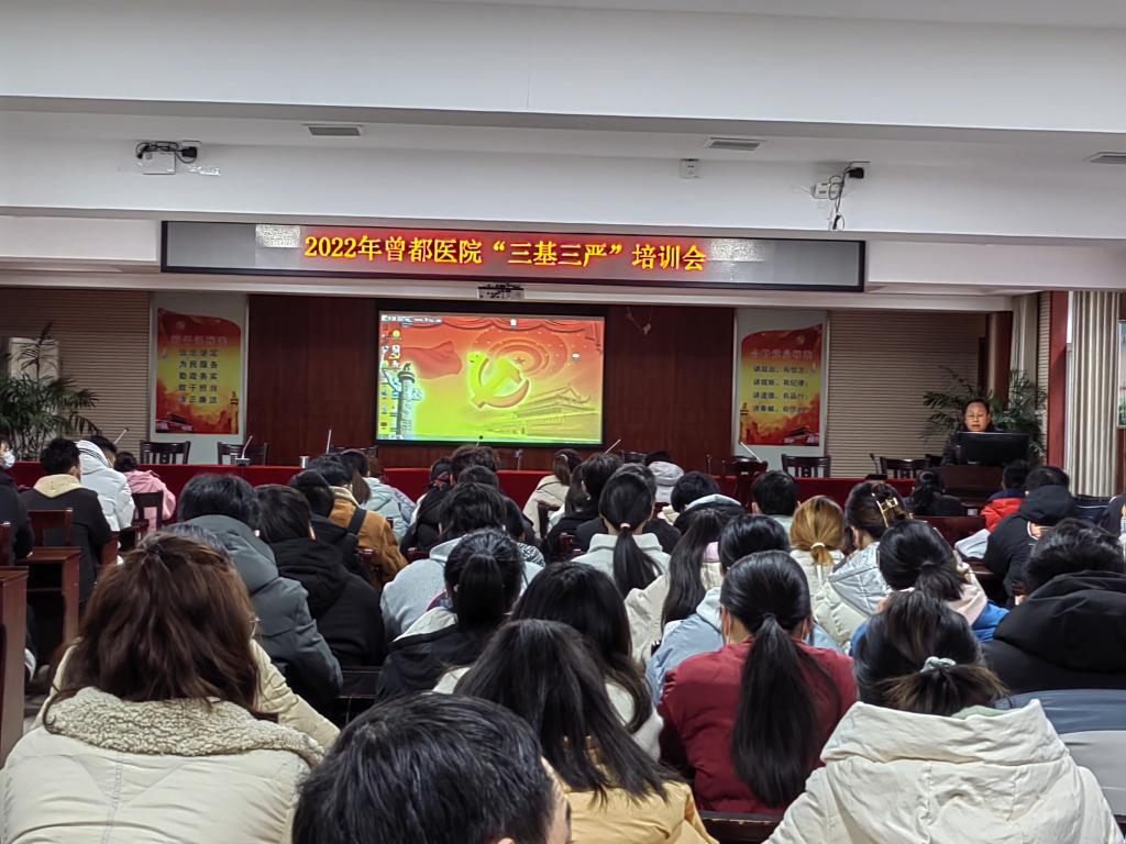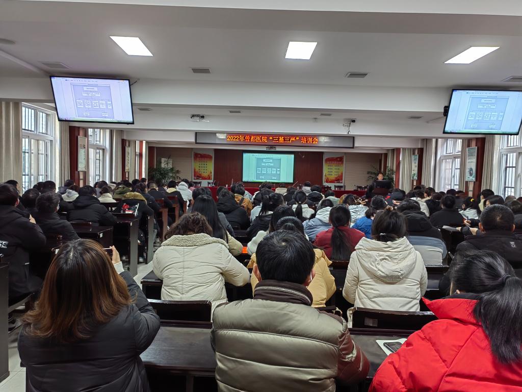 为提高实习学生临床急救水平,规范医疗操作程序,保障医疗安全和医疗质量,2022年1月13日下午四点半在曾都医院临床教室一楼召开了“三基三严”培训会,“三基”即:基本理论、基本知识、基本技能;“三严”即:严格要求、严密组织、严谨态度。曾都医院根据卫生部要求为全部实习学生进行“三基三严”培训并组织考核,要求必须人人达标。