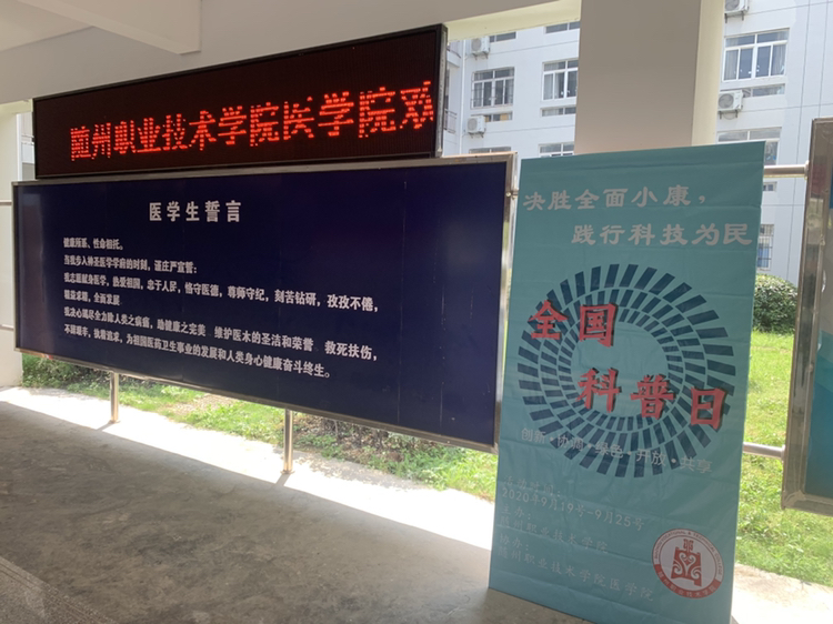 医学院围绕科普主题,通过摆放宣传展板,班级QQ群等途径,向广大学生进行节水科普、健康科普、应急科普、疫情科普和心理健康等方面的知识宣传。通过各班开展主题班会,开放实训实验室,组织学生参观,大力弘扬科学精神、普及科学知识,充分展现科技进步对实现全面小康打赢脱贫攻坚战满足人民美好生活需要的重要作用。