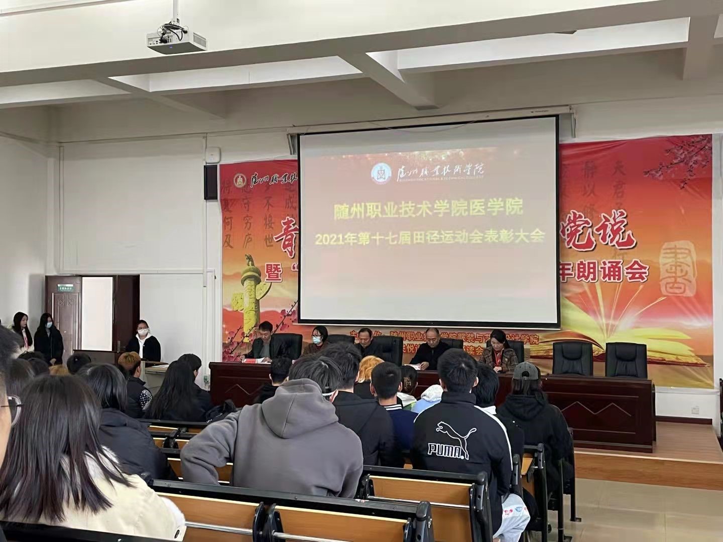 伴随着第十七届田径运动会的完美落幕,2021年11月9日中午12:30,随州职业技术学院医学院召开了医学院第十七届田径运动会表彰大会。参与本次表彰大会的有医学院党总支书记、院长王文勇同志,副院长冯丽,党总支副书记周正同志、学生办公室主任黄园园同志以及医学院各班班长,团支书、全体运动员们,学生办公室副主任刘剑砺主持会议。