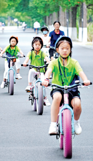 坚持人民至上,不断提高群众的幸福指数。 图为孩子们在东湖绿道快乐骑行。 长江日报记者何晓刚 摄