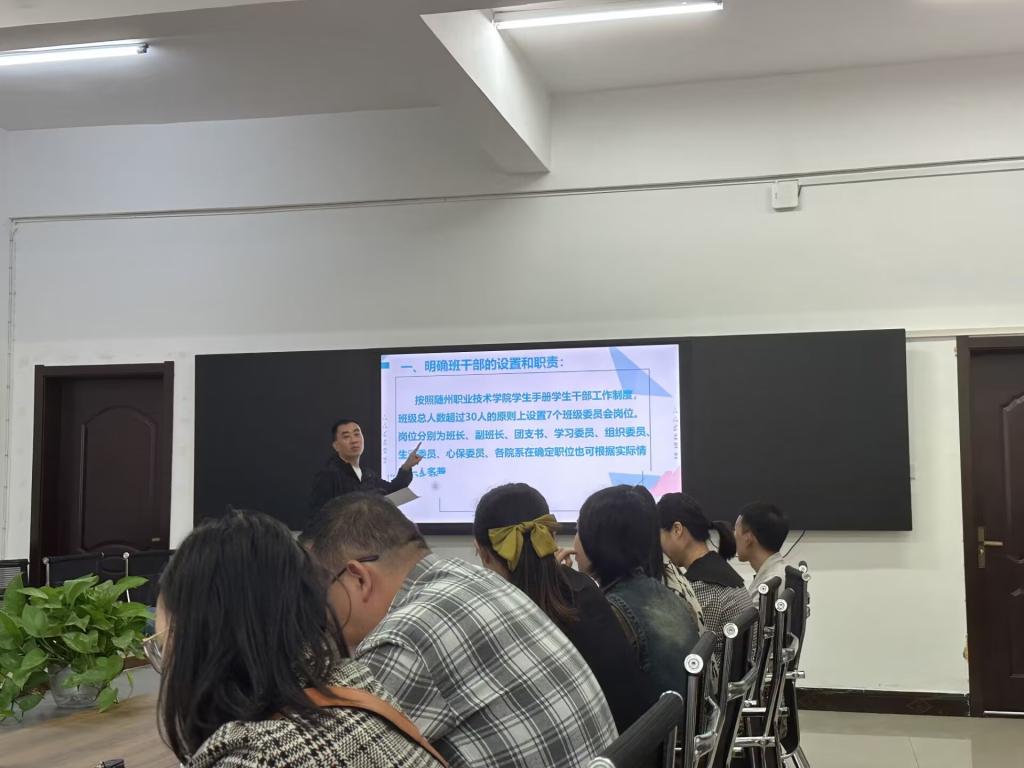 9月24日下午16:00在医学院四楼会议室召开关于“班委会培养模式思考”的专题会议,由医学院学工办主任王诚领学,参加学习的有22级、23级专兼职辅导员。