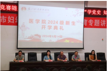 2024年9月14日上午8:30,随州职业技术学院医学院2023级新生开学典礼在云桂楼4203教室举行。学校领导医学院党总支书记、院长王文勇,医学院党总支副书记周正,医学院副院长冯丽,医学院教学办刘洪凤科长,临床专业教研室,金洁主任,琚晓丹主任,优秀毕业生代表潘越。会议由医学院学工办主任王诚主持。