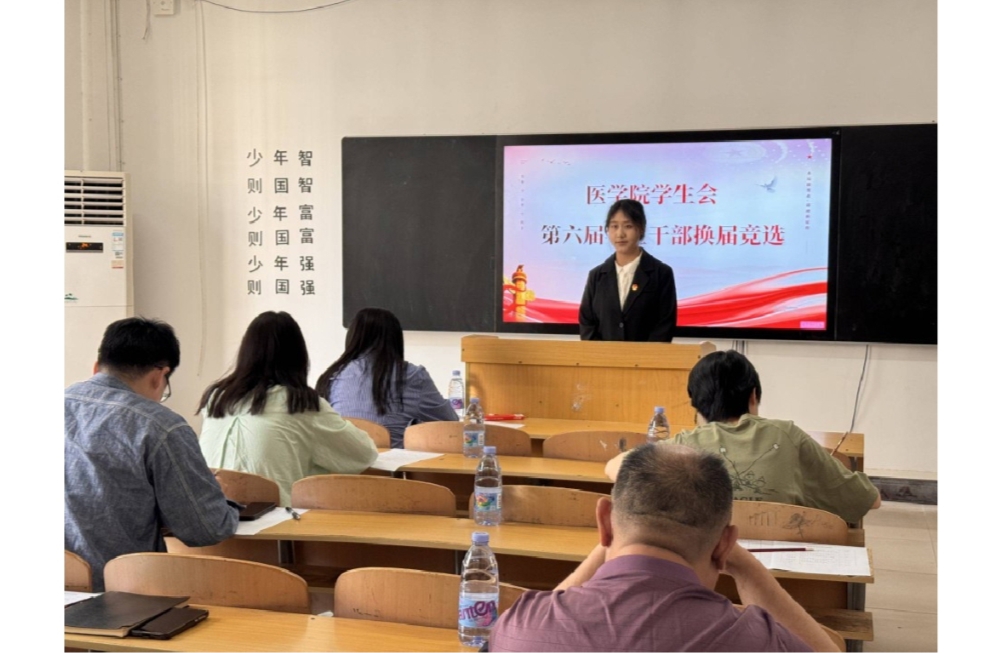 2025年5月13日,医学院第六届学生会干部竞选活动在4215教室举行。此次竞选对象为24级各部门干事,竞选职位有主席,副主席以及各部门部长,副部长,医学院领导和各学工办老师为此次活动评委。本次竞选共有22名干事参与竞选。