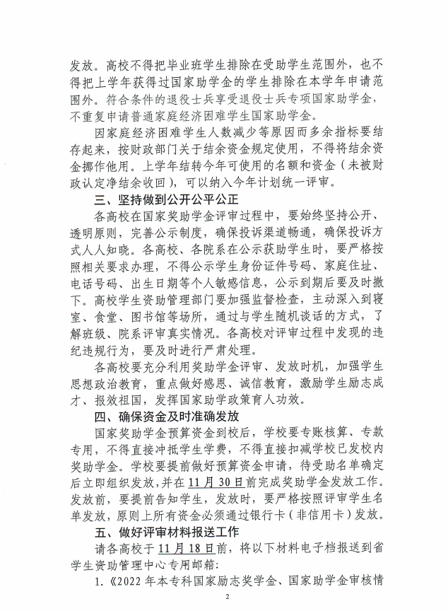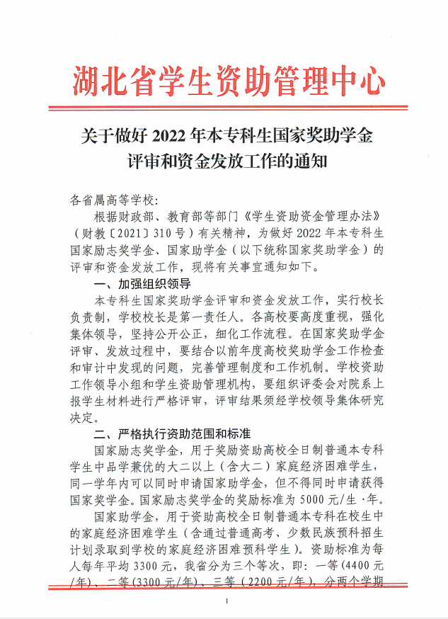 关于做好2022年本专科生国家奖助学金评审和资金发放工作的通知