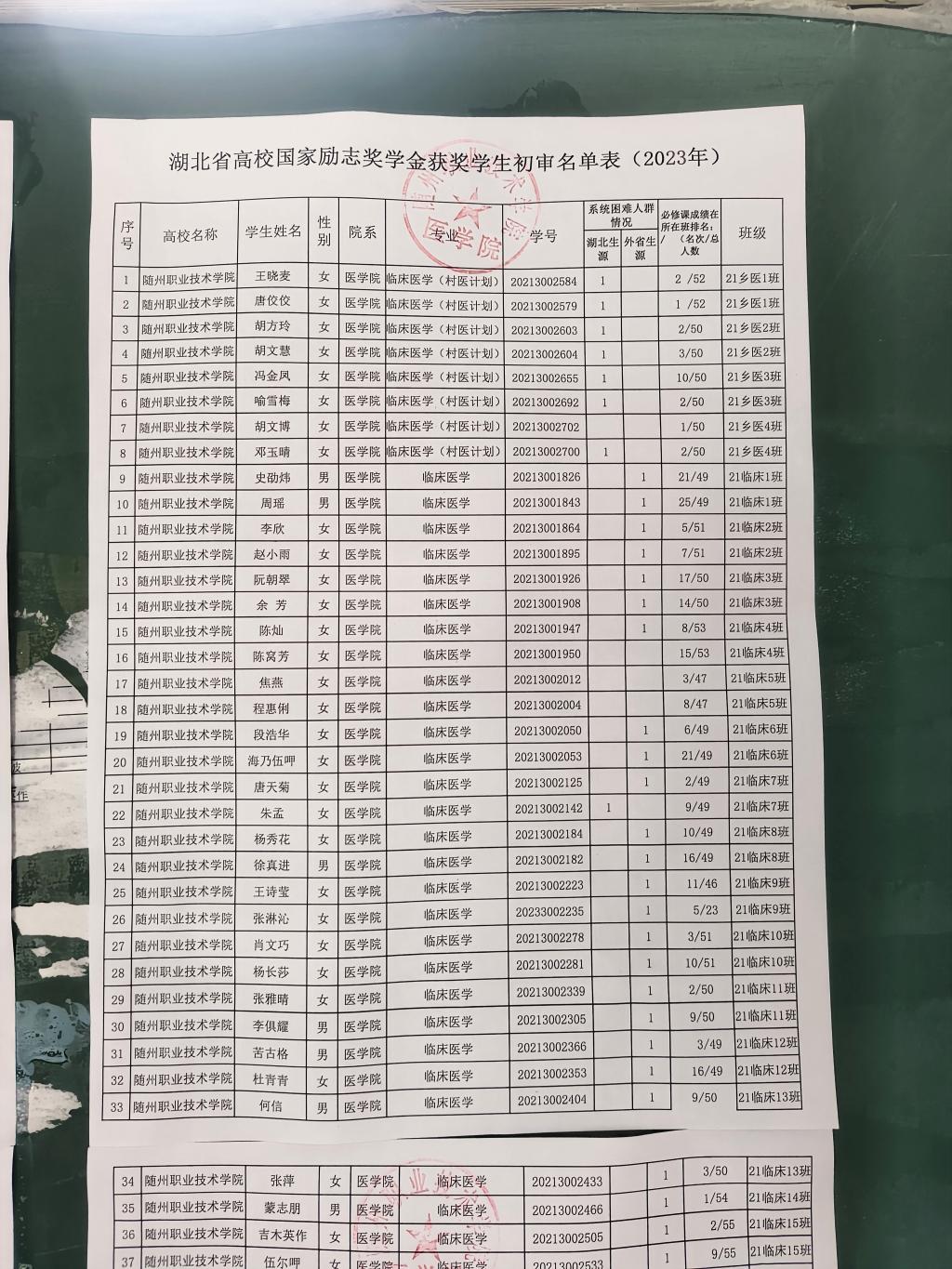 医学院2022-2023学年国家励志奖学金、助学金初审名单公示