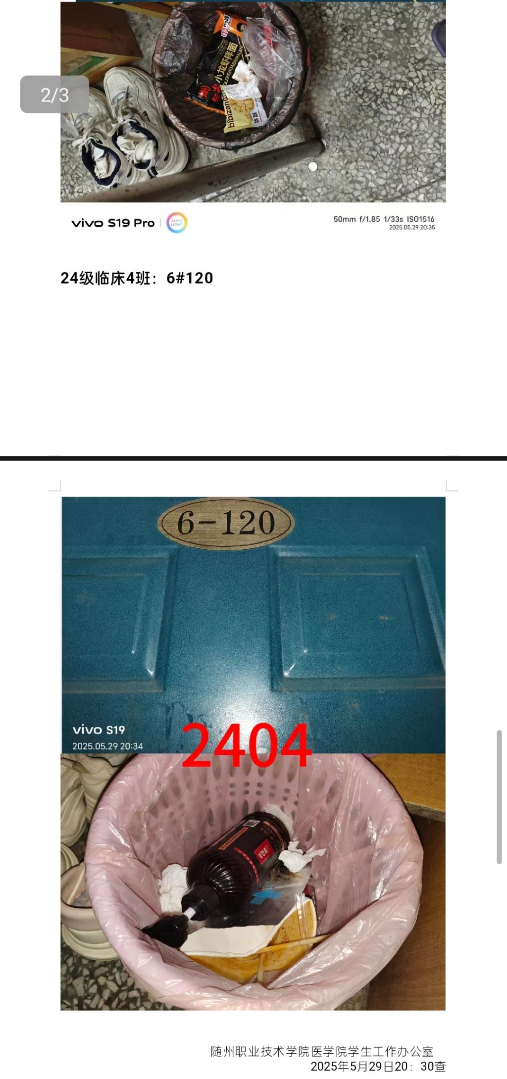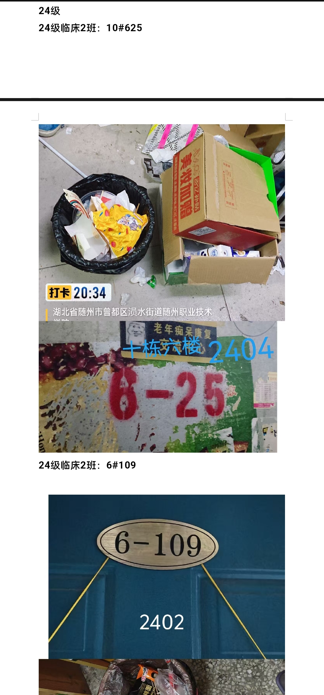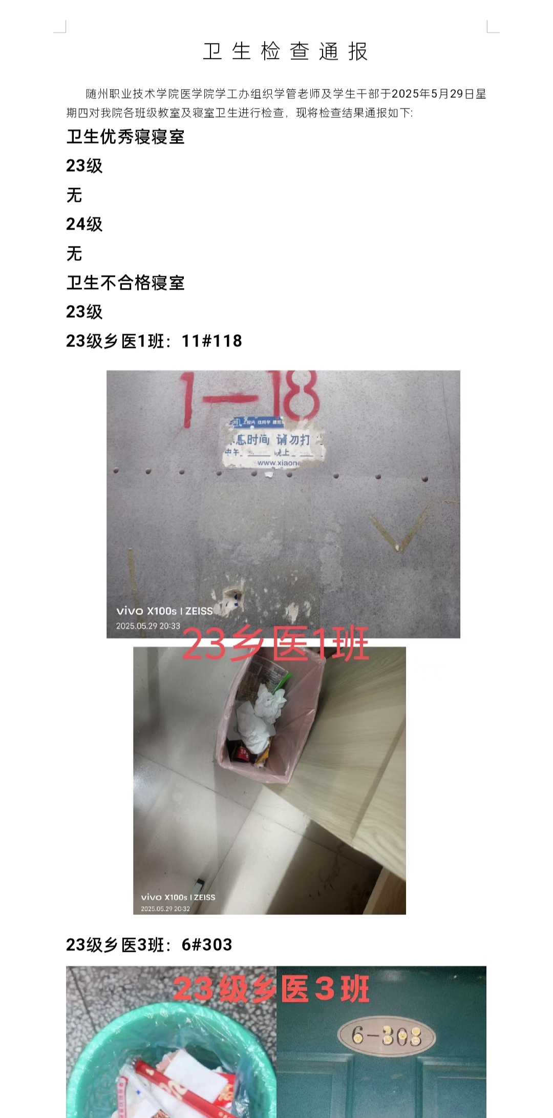 2025年5月29日 20:30 五六栋之间 学生会检查寝室卫生 通报表如下: