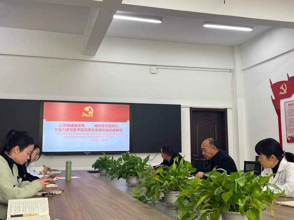 根据学习贯彻习近平新时代中国特色社会主义思想主题教育相关工作部署,12月8日,医学院党总支书记王文勇在会议室以《以学铸魂强党性 砥砺奋进践初心 为奋力谱写医学院高质量发展新篇章建新功》为题讲授主题教育专题党课,医学院全体党员参加了学习。