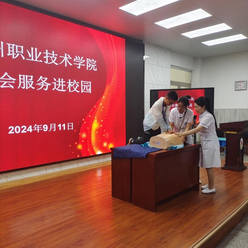 随着教师节的到来及新学期的蓬勃开启,为了提升广大师生对急救技能的认识与掌握,增强应急自救与互救能力,营造人人学急救、人人会急救的良好社会氛围。9月11日,随州职业技术学院医学院组织了一场以“关爱师生生命健康,共建美好和谐校园”为主题的社会服务活动,走进随州市外国语学校,为师生送上一份特别的健康礼物。