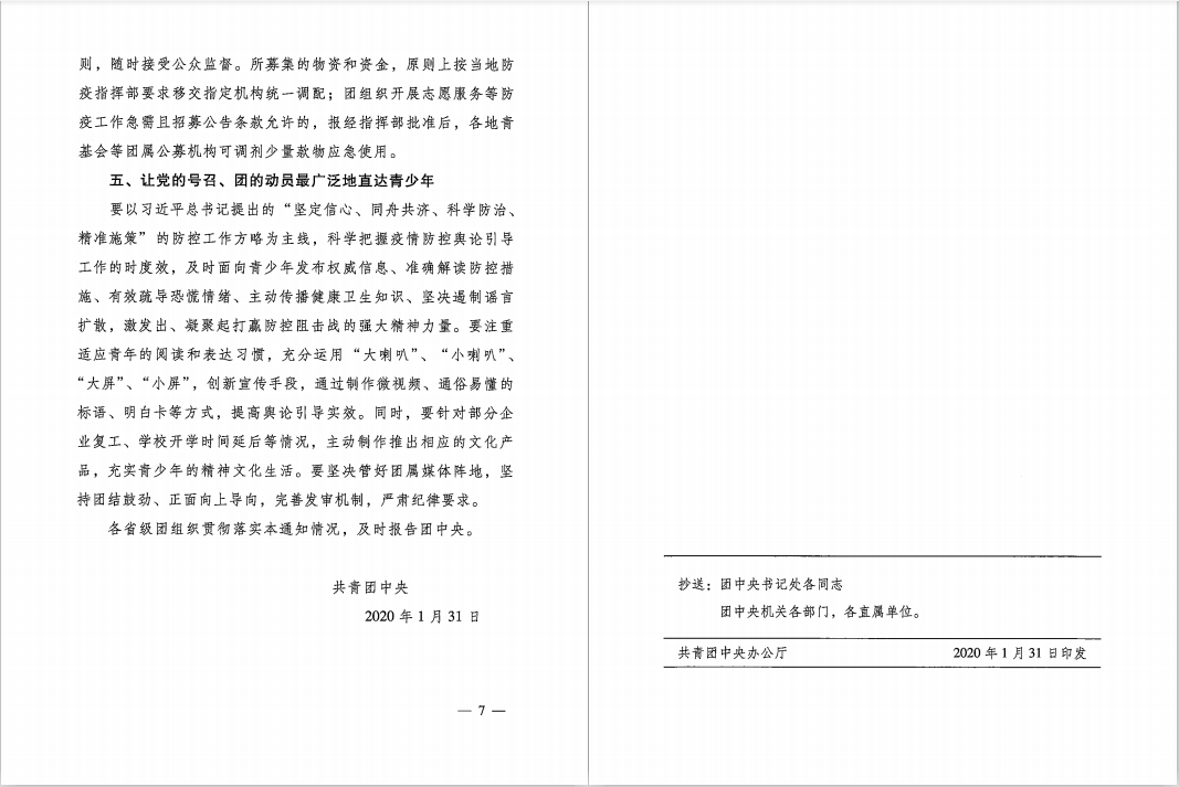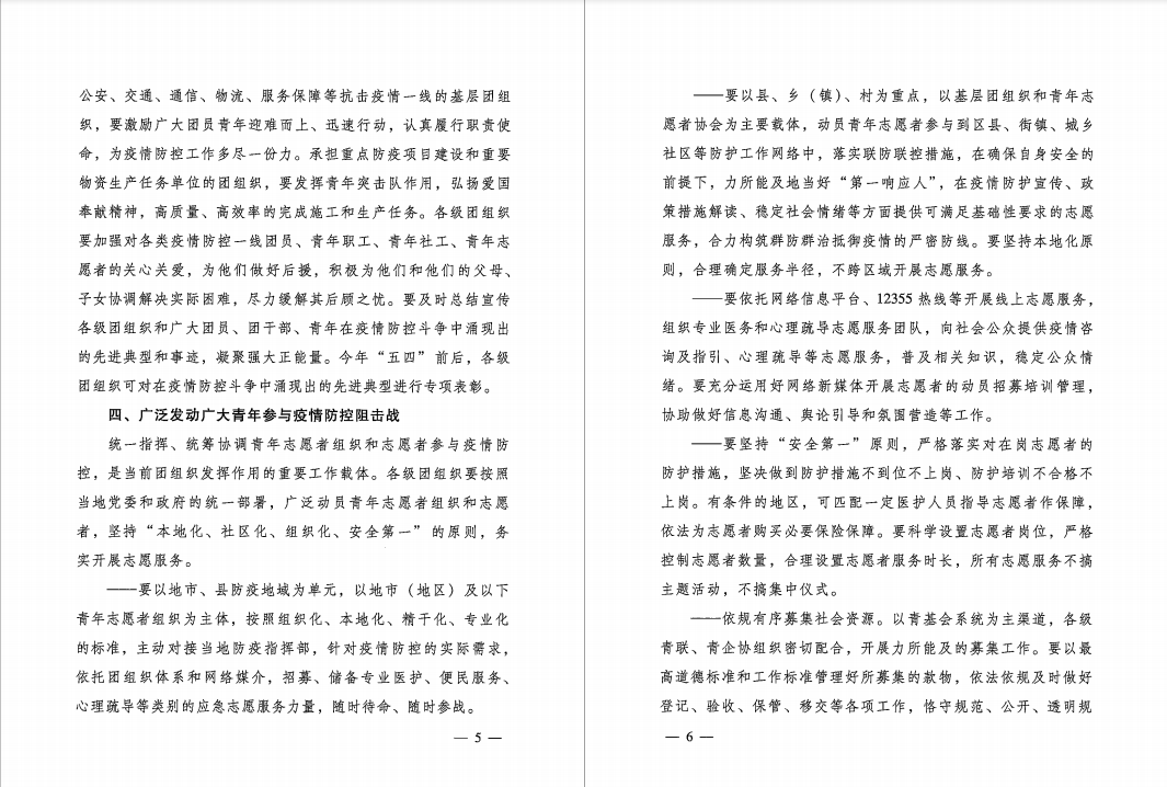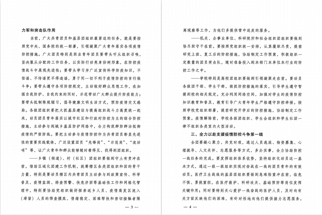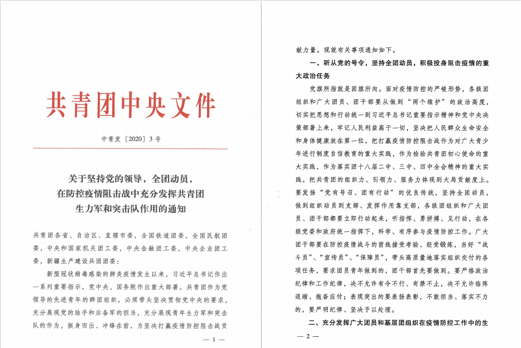 共青团中央关于坚持党的领导,全团动员,在防控疫情阻击战中充分发挥共青团生力军和突击队作用的通知