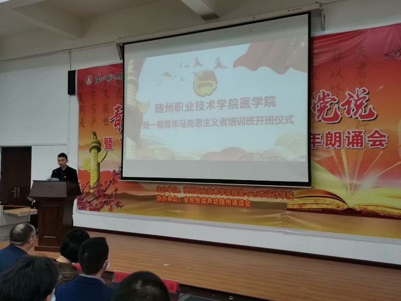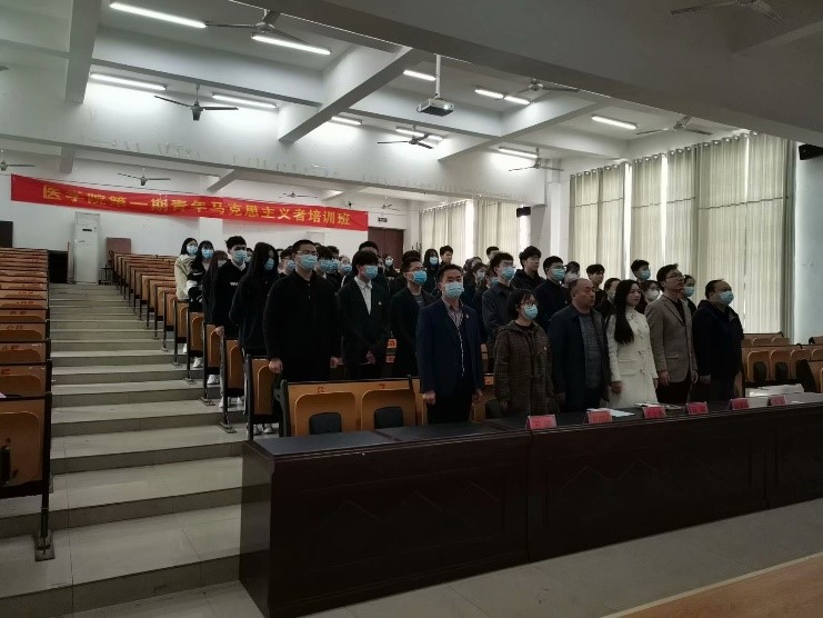 为深入实施青年马克思主义者培养工程,教育引导医学院青年学生做新时代中国特色社会主义的“践行者”,2021年3月16日中午13时,云桂楼4203阶梯教室举行医学院第一期青年马克思主义培训班开班仪式。参加开班仪式的领导老师分别是:医学院党总支书记院长王文勇、校团委副书记程蓉、医学院副院长曾建平、医学院学工办主任黄园园、青马班指导教师刘剑砺及学工办全体老师。