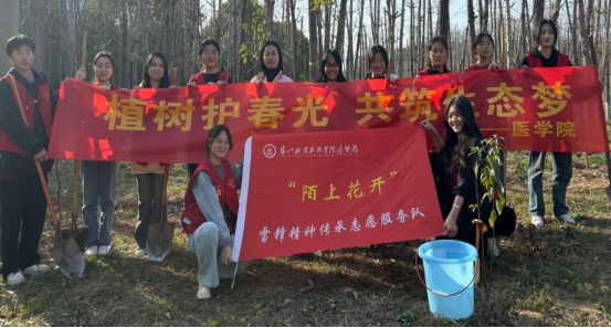 阳春三月,草长莺飞,正是植树造林的好时节。3月19日,在医学院团总支书记朱春丽老师的带领下,医学院“陌上花开”志愿者以实际行动为大地添绿,共同践行生态保护理念,共筑