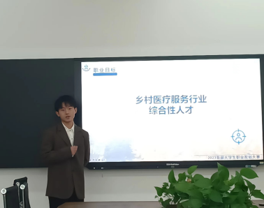 职业规划大赛分为成长赛道和就业赛道两个赛道。大赛前期各个班级积极动员学生参加全国大学生首届职业规划大赛,通过网上网上答题申报、学生自主报名有60余位同学参加初赛,经过层层选拔,最终13名同学脱颖而出参加最终的决赛。决赛现场邀请医学院党委副书记周正、学工办主任王诚、学工办副主任刘剑砺、朱春丽、卢伦共同担任评委。