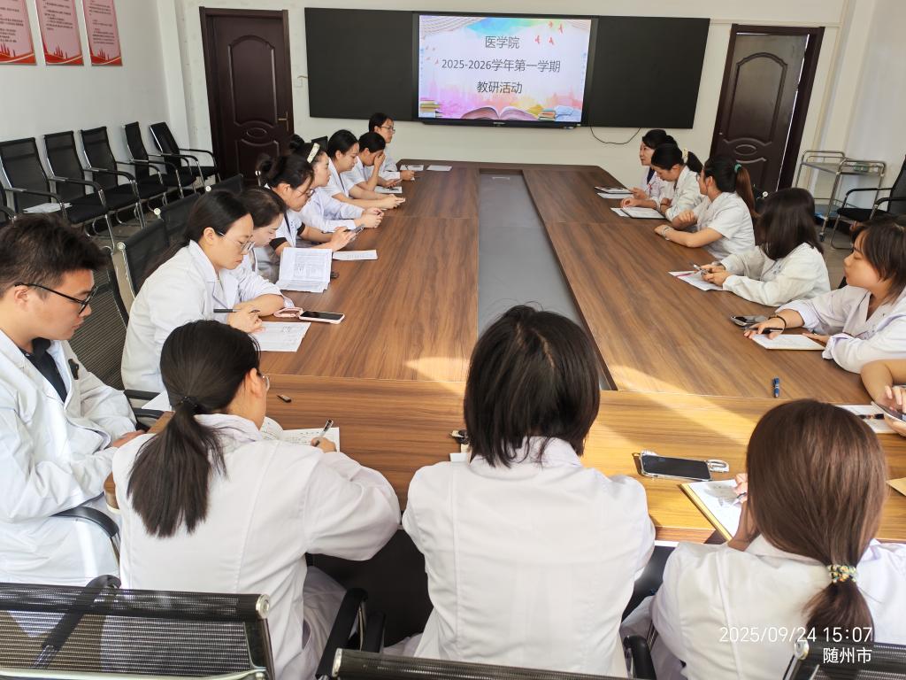 2025年9月24日下午15:00医学院临床专业教研室在云桂楼会议室组织开展本学期第三次教研活动,医学院全体专任教师参加本次会议,会上金院长和冯院长就近期的教学与管理等重点工作进行了具体安排。